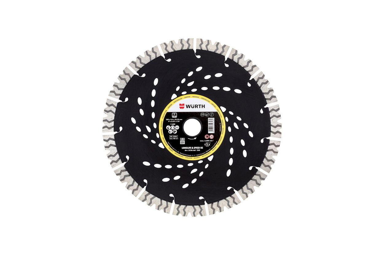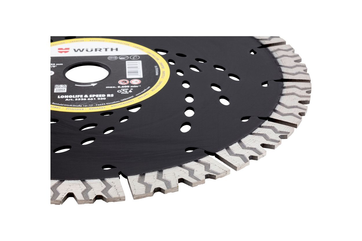 Инновационные веерные сегменты особой формы подают охлаждающий воздух и отводят пыль из зоны резания. Специальные отверстия охлаждения в форме стрелки служат дополнительным элементом охлаждения и заметным указателем направления вращения.