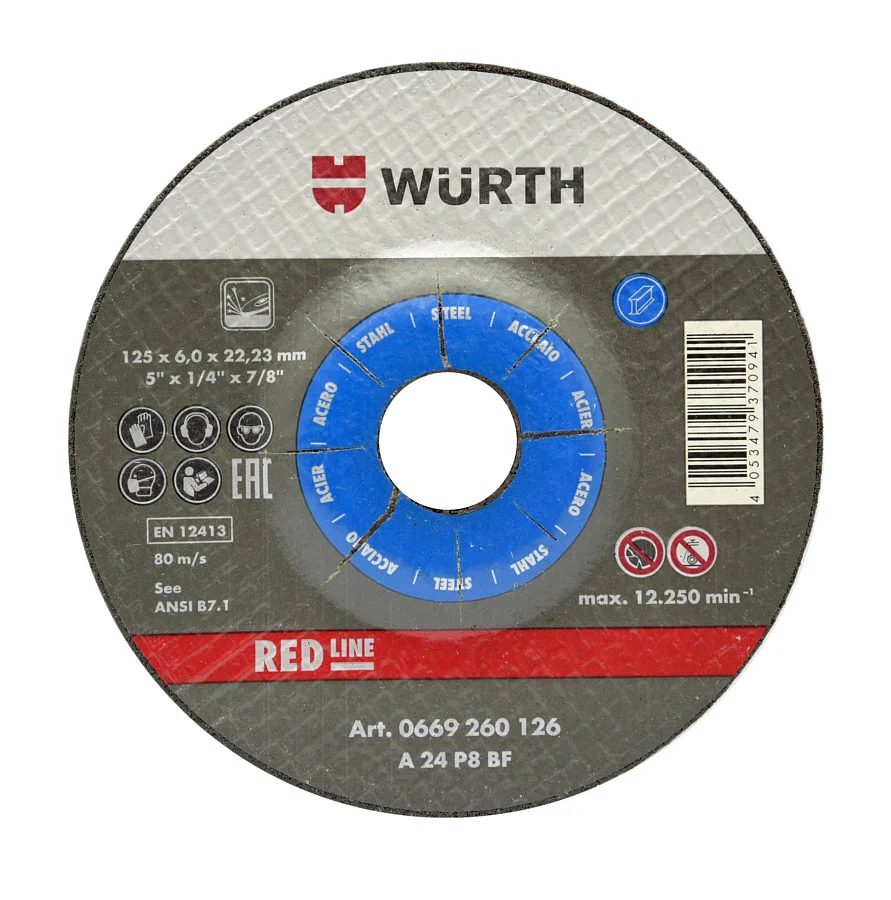 Шлифование кромок, твердых сварных швов и поверхностей. Шлифовальный диск, синий, по стали.