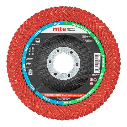 Круг лепестковый торцевой прямой КЛТ1 PRO КЕРАМИКА РАДИУС D125X22,2 мм, керамическое зерно (CG) 80, mte