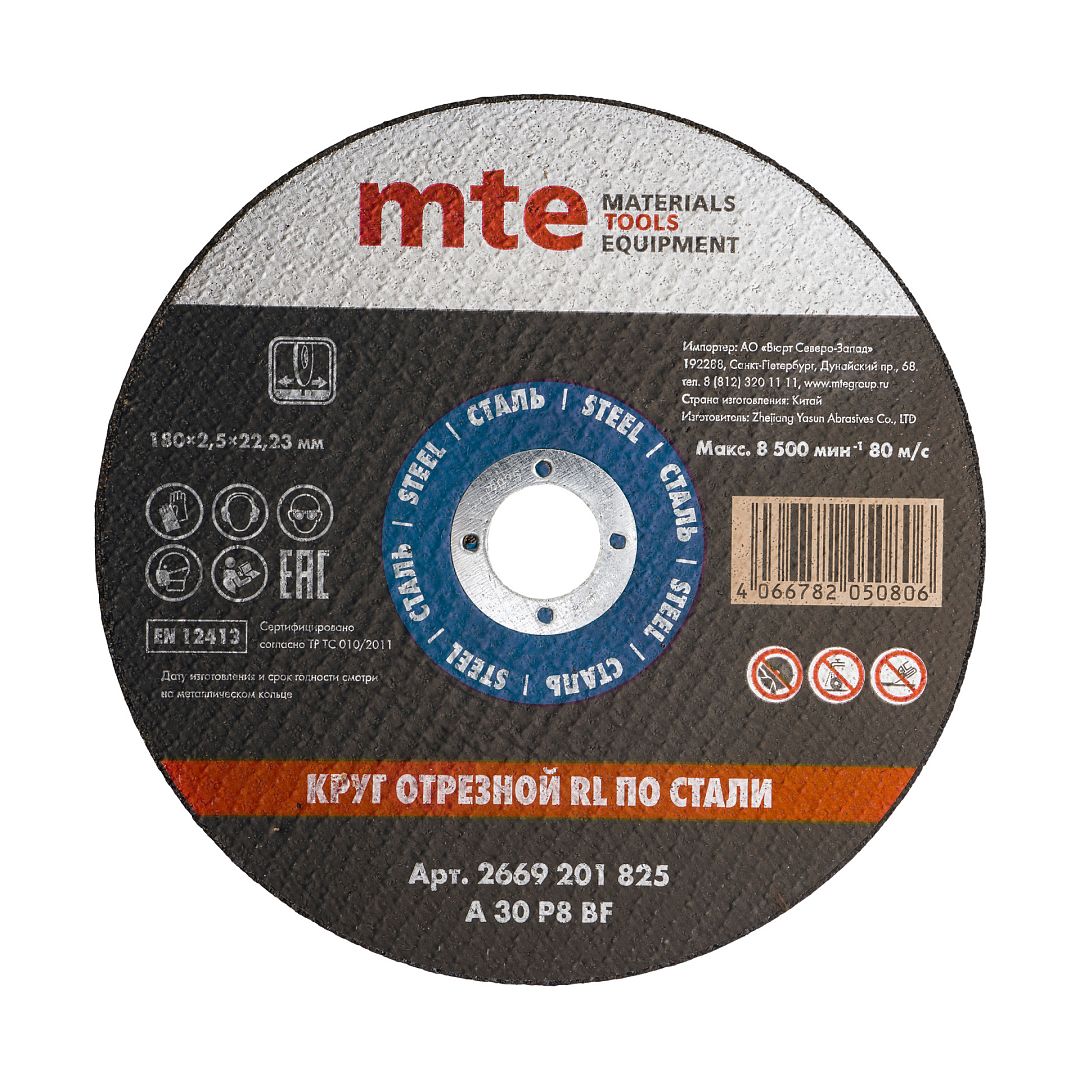 Круг отрезной RL по стали D180X2,5X22,2 мм, mte