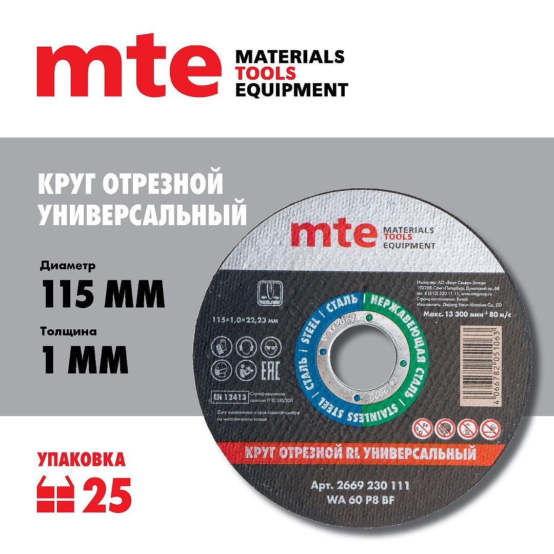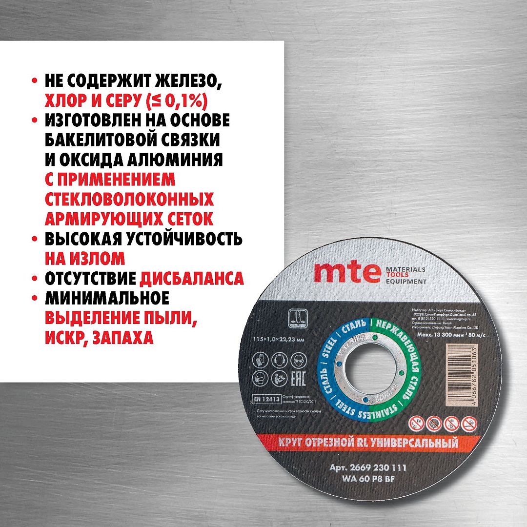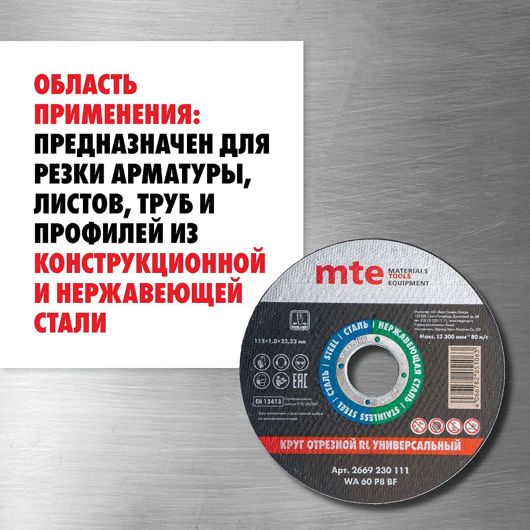 Круг отрезной RL универсальный D115X1,0X22,2 мм, mte