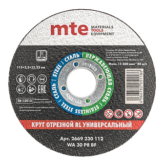 Круг отрезной RL универсальный D115X2,5X22,2 мм, mte