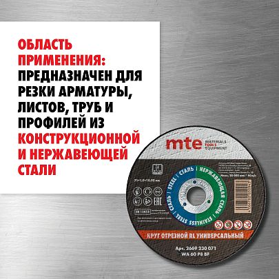 Круг отрезной RL универсальный D75X1,0X10,0 мм, mte