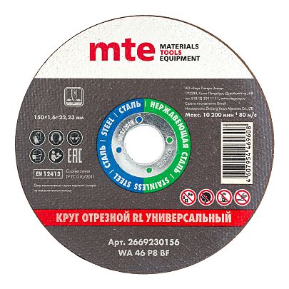 Круг отрезной RL универсальный D150X1,6X22,2 мм, mte