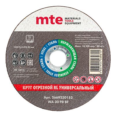 Круг отрезной RL универсальный D150X2,5X22,2 мм, mte