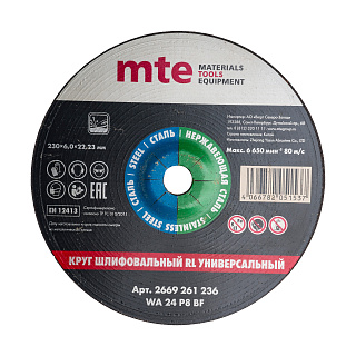 Круг шлифовальный RL универсальный D230X6,0X22,2 мм, mte
