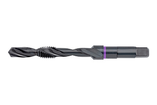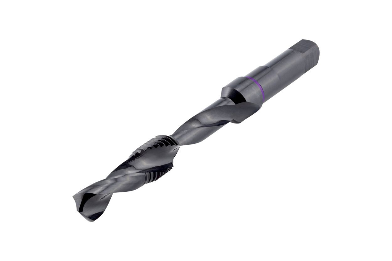 Обеспечивает сверление, нарезание резьбы и зенкование/ снятие заусенцев на глубину двух диаметров в отличии от обычных комбинированных метчиков (2xD вместо 1xD)