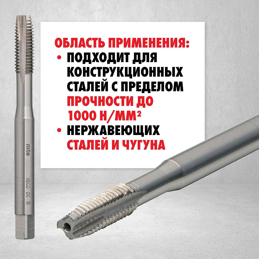 Подходит для конструкционных сталей с пределом прочности до 1000 Н/мм², нержавеющих сталей и чугуна.