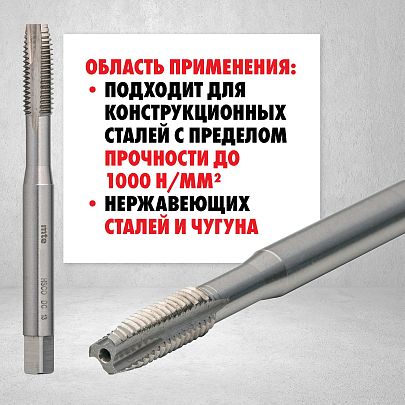 Универсальный машинный метчик для широкого применения по стали с пределом прочности до 1000 Н/мм², нержавеющим сталям и чугуну