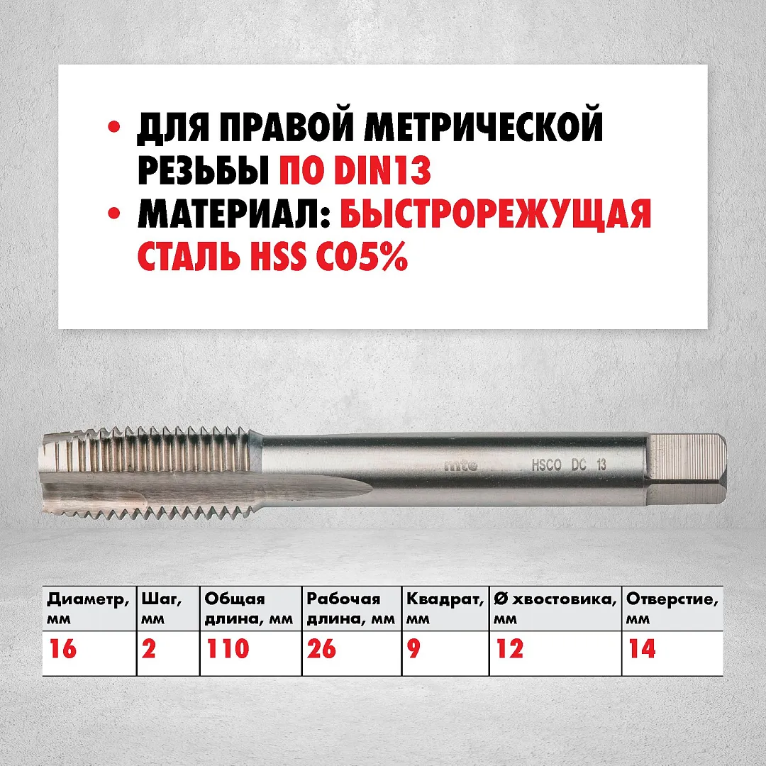 Метчик машинный HSS Co5% DIN 376 B для сквозных отверстий M16X2,0, mte
