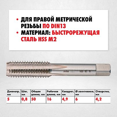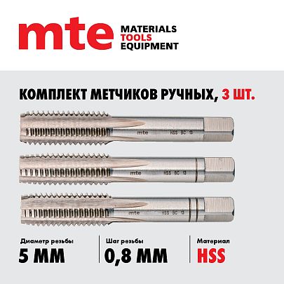 Метчики ручные HSS DIN 352, комплект 3 шт. M5X0,8, mte