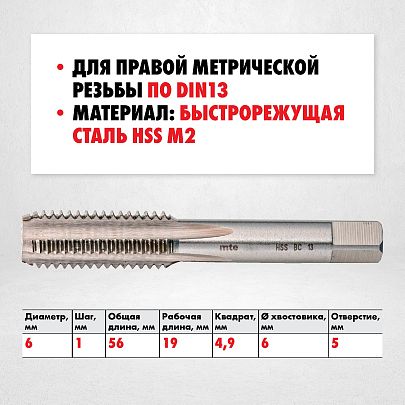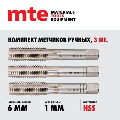 Метчики ручные HSS DIN 352, комплект 3 шт. M6X1,0, mte