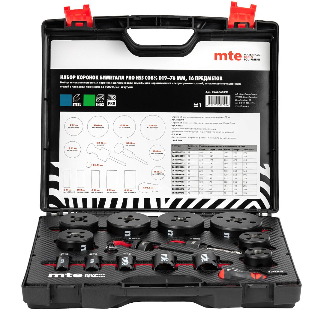 Набор коронок биметалл PRO HSS Co8% D19-76 мм, mte