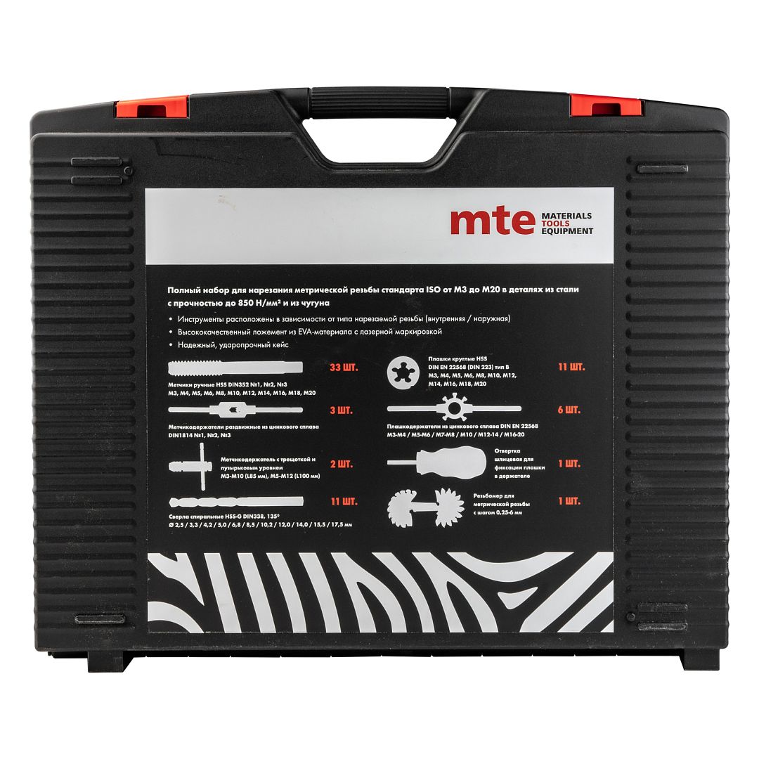 Наборы ручных метчиков и плашек HSS M3-M20, 68 предметов, mte