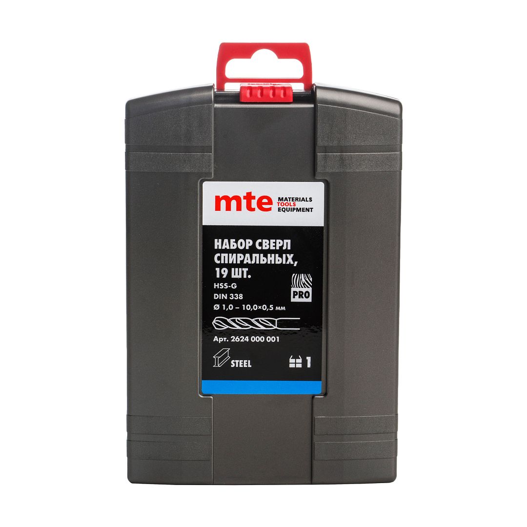 Набор сверл спиральных по металлу HSS-G PRO DIN 338 1-10 мм, шаг 0,5 мм, 19 шт., mte