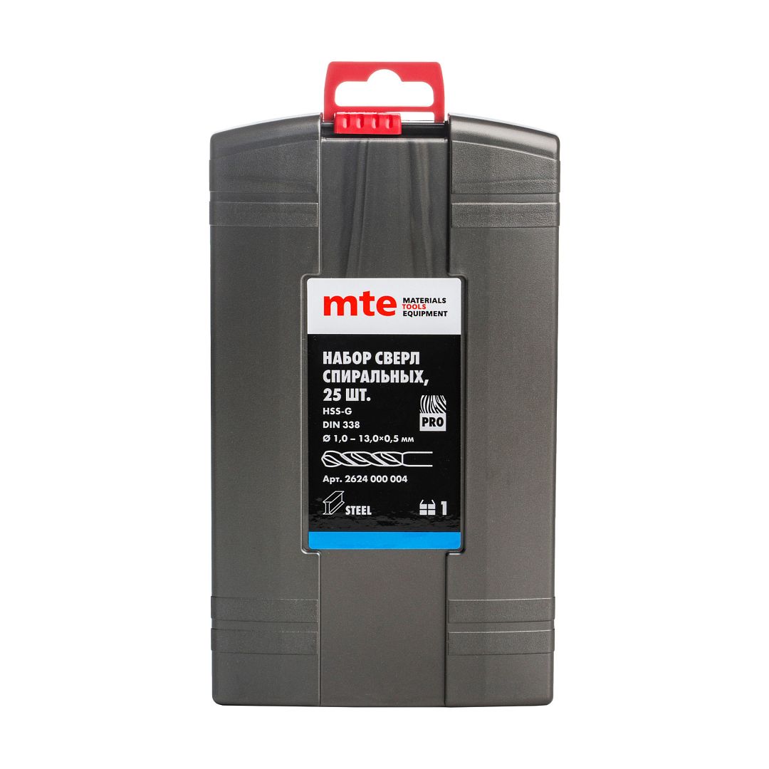 Набор сверл спиральных по металлу HSS-G PRO DIN 338 1-13 мм, шаг 0,5 мм, 25 шт., mte