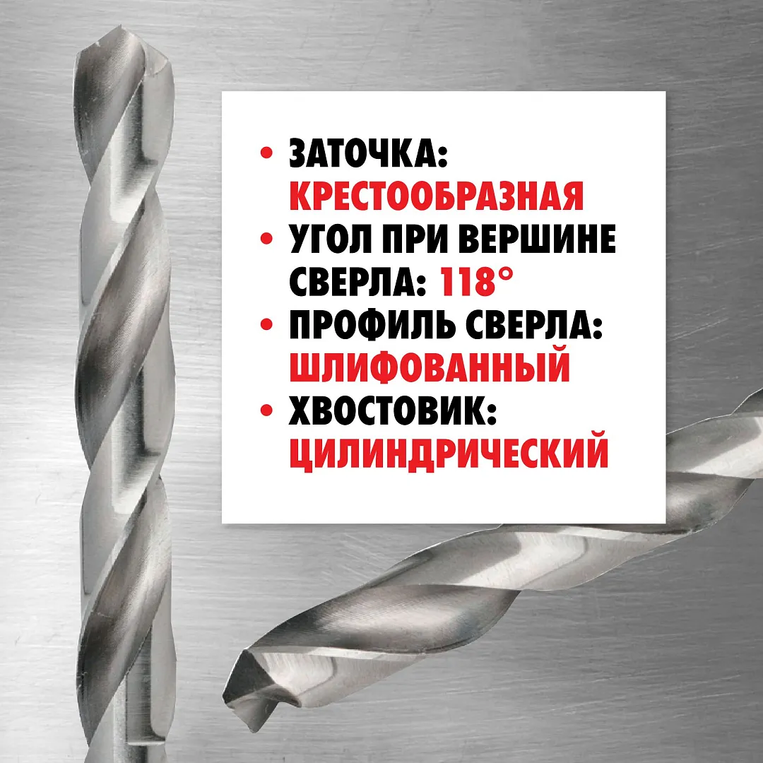 Угол при вершине сверла: 118°