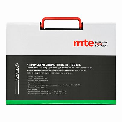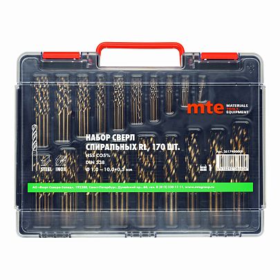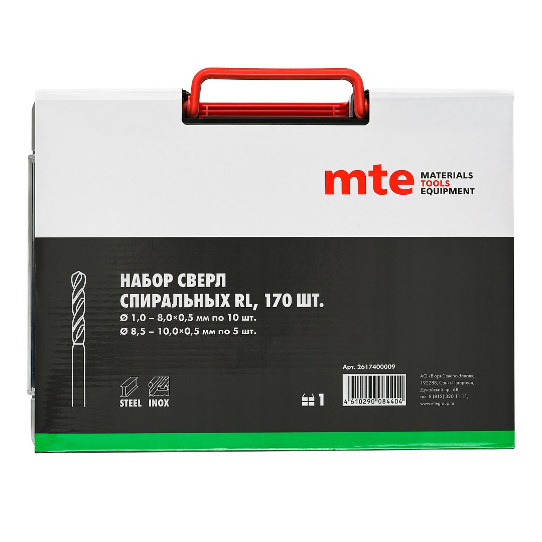 Набор сверл спиральных по металлу HSS Co5% RL DIN 338 1-10 мм, шаг 0,5 мм, 170 шт., mte
