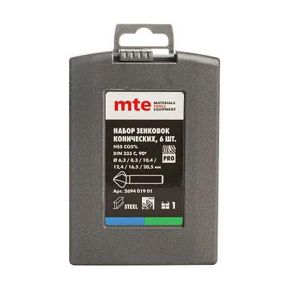 Набор зенковок конических HSS Co5% DIN 333 C 6,3-20,5 мм, 6 шт., mte