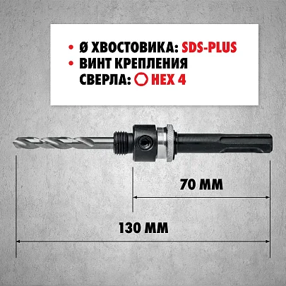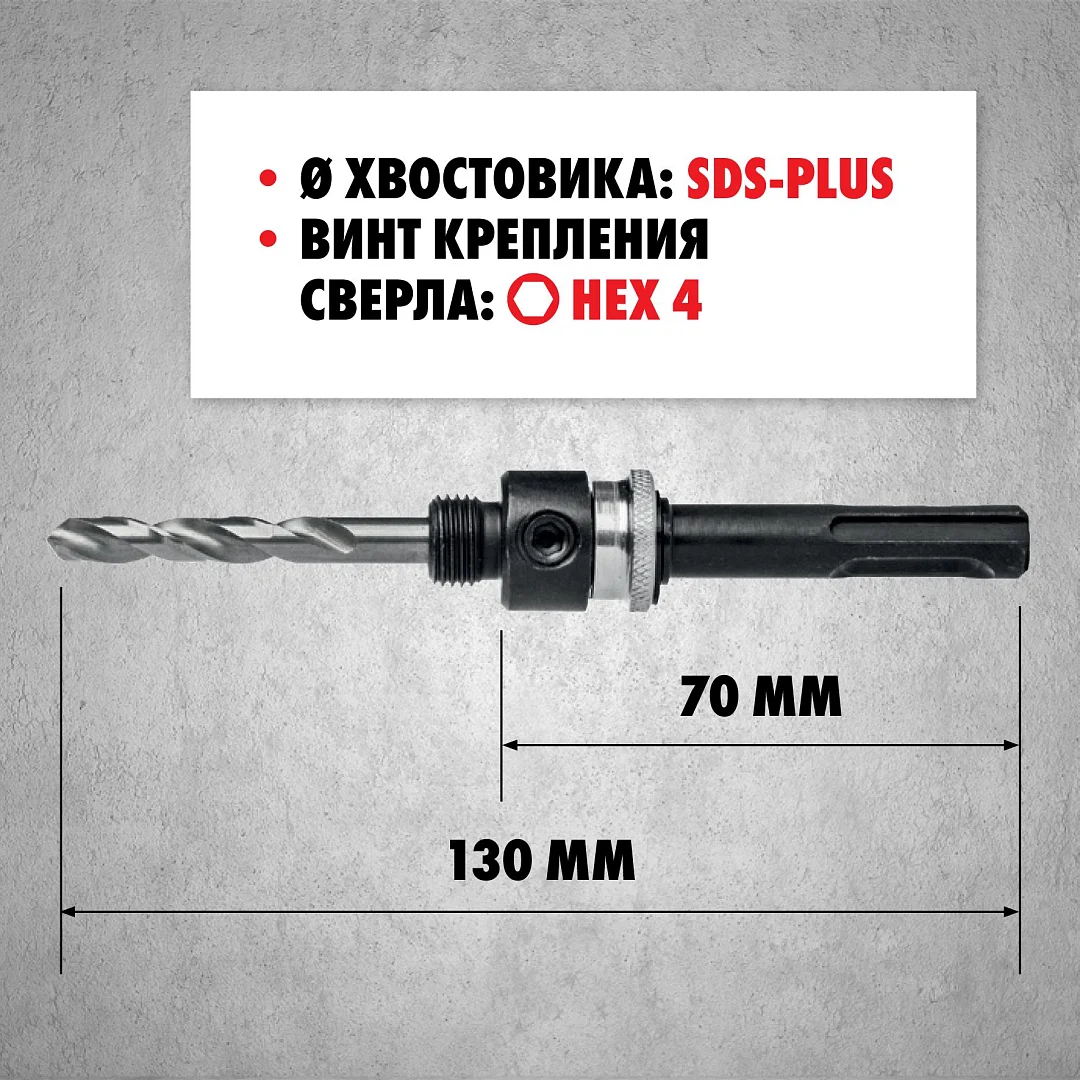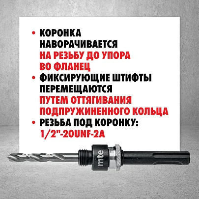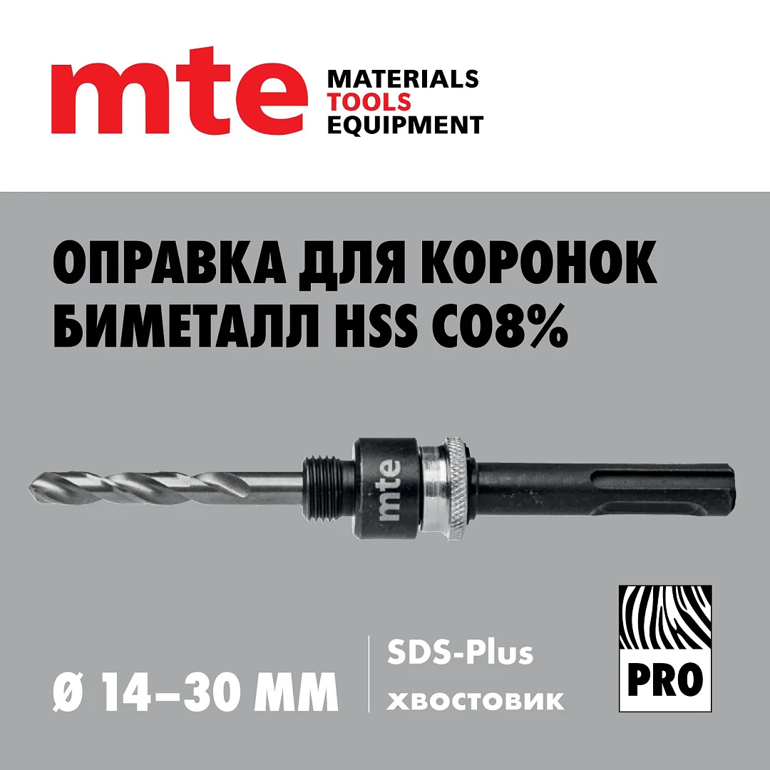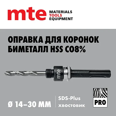 Оправки для коронок биметалл HSS Сo8% 14-30 мм, хвостовик SDS-Plus, mte