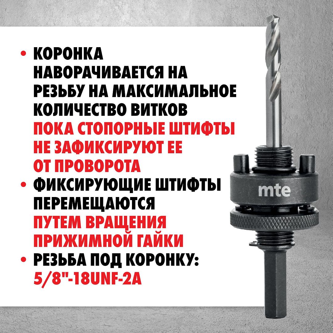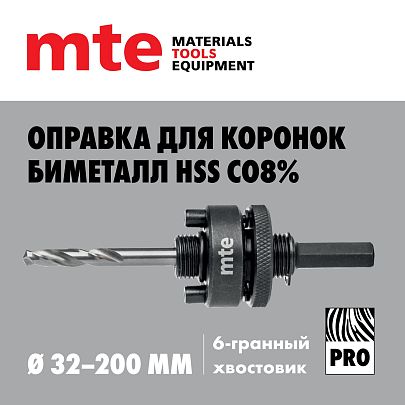 Оправки для коронок биметалл HSS Сo8% 32-200 мм, 6-гранный хвостовик, mte