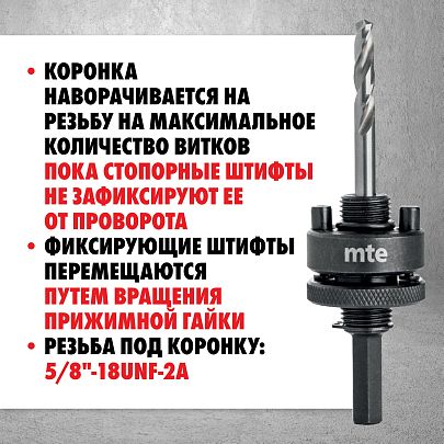 Для большой оправки коронка наворачивается на резьбу на максимальное количество витков пока стопорные штифты не зафиксируют ее от проворота.