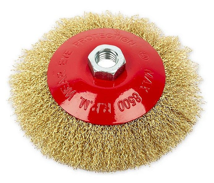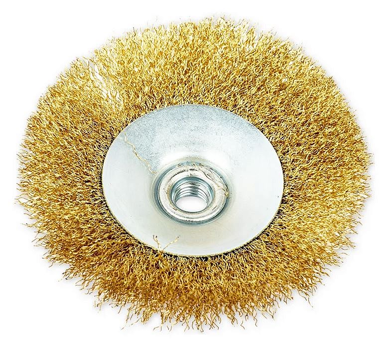 Щетка для УШМ конусная 125 мм, M14, латунированная сталь d=0.3мм, 8500об/мин