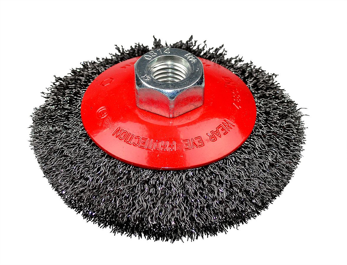 Коническая щетка с волнистой стальной проволокой для угловых шлифмашинок