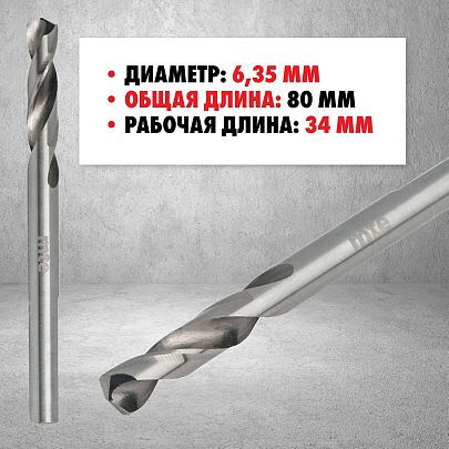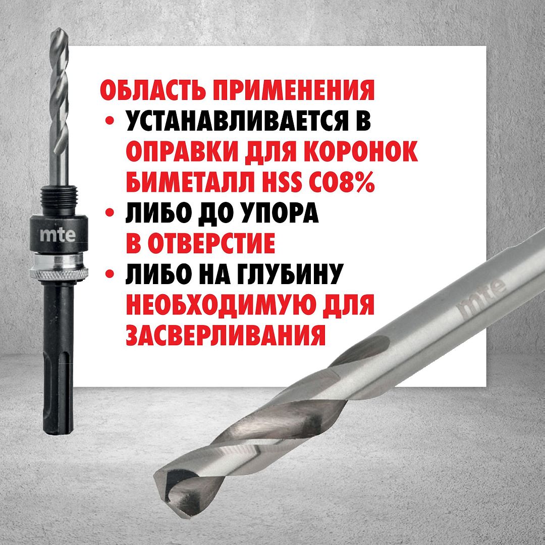 Сверло центрирующее PRO HSS-G для коронок биметалл D6,35 мм, mte