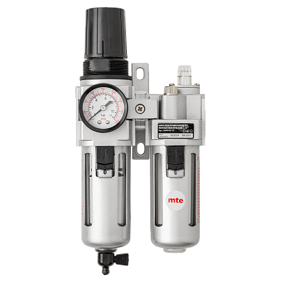 Фильтр очищает воздух от пыли и конденсированной воды. Регулятор позволяет устанавливать точное рабочее давление для оптимальной работы прибора. Смазочное устройство подает на подключенный пневматический инструмент, регулируемый масляный туман
