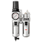 Устройство для обслуживания состоит из трех компонентов: Фильтр очищает воздух от пыли и конденсированной воды. Регулятор позволяет устанавливать точное рабочее давление для оптимальной работы прибора. Смазочное устройство подает на подключенные пневматические устройства регулируемый мелкий масляный туман.