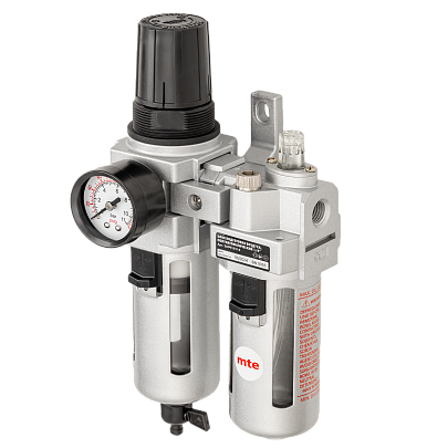 Устройство для обслуживания состоит из трех компонентов: Фильтр очищает воздух от пыли и конденсированной воды. Регулятор позволяет устанавливать точное рабочее давление для оптимальной работы прибора. Смазочное устройство подает на подключенные пневматические устройства регулируемый мелкий масляный туман.