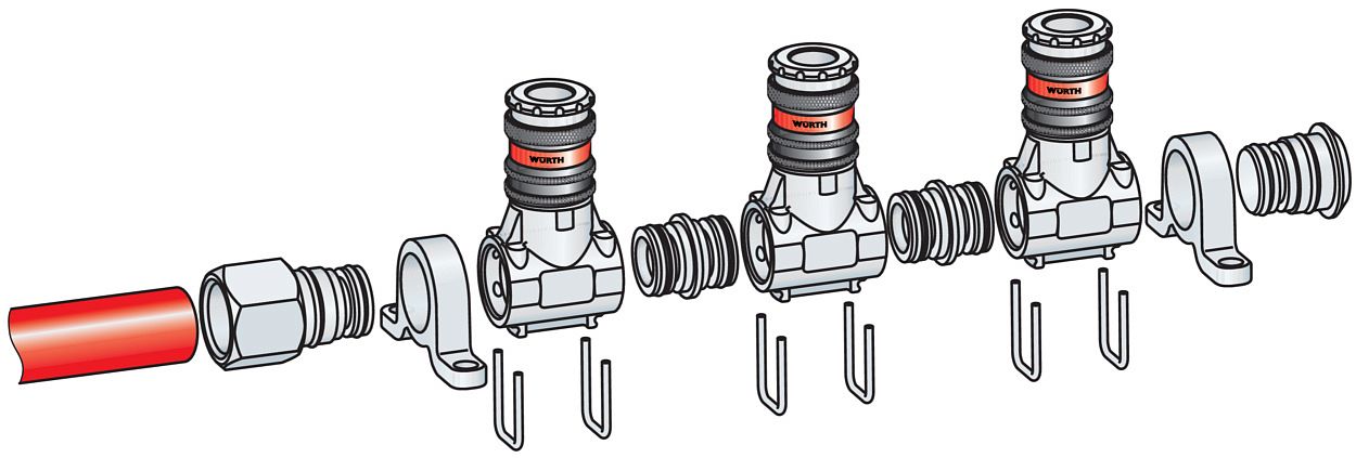 Несколько соединений для подачи сжатого воздуха без необходимости применения угловых деталей или тройников.