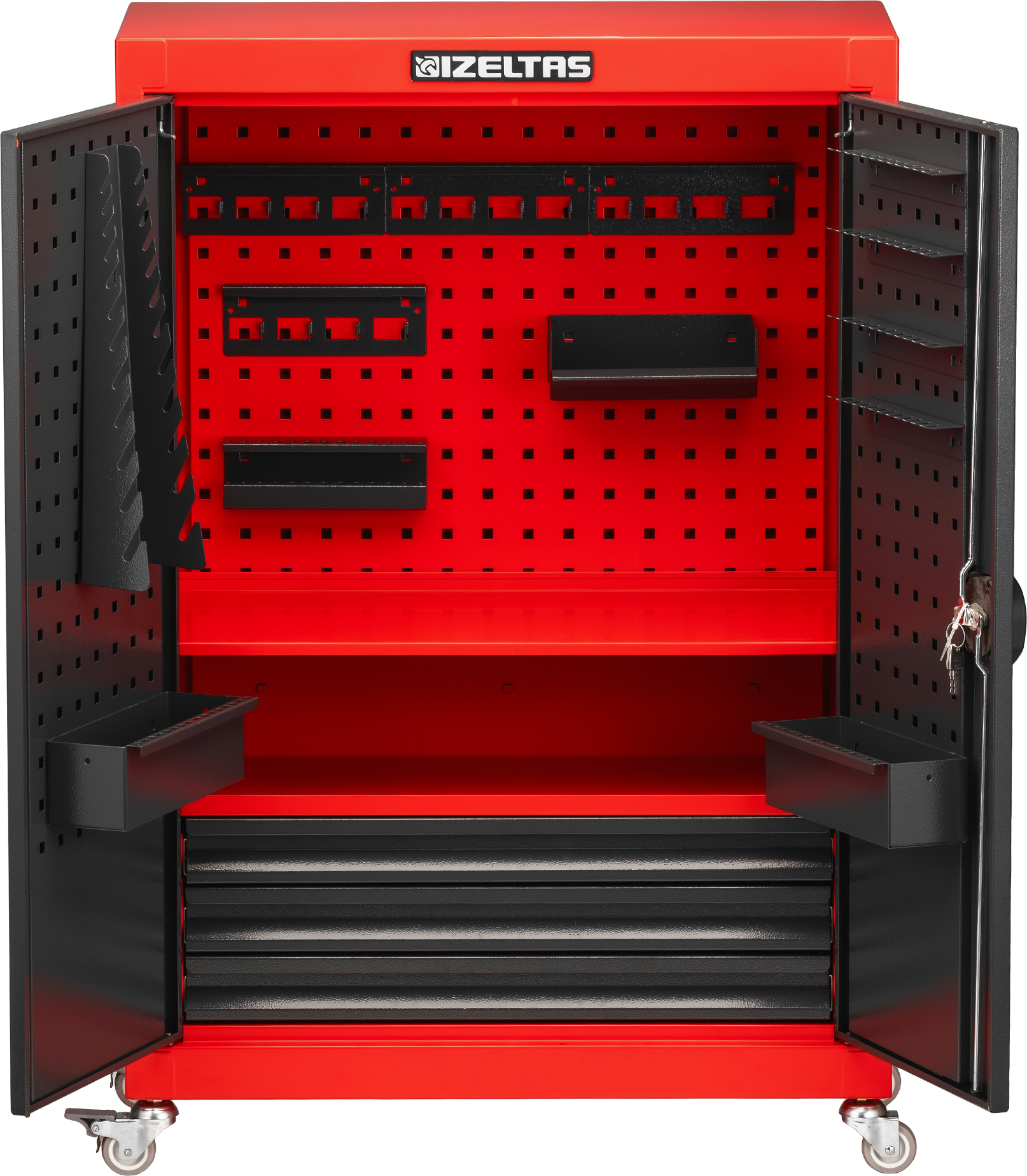 Шкаф инструментальный передвижной, 3 выдвижных ящика, 2 полки, красно-черный. IZELTAS, 8160326001, 13000002112