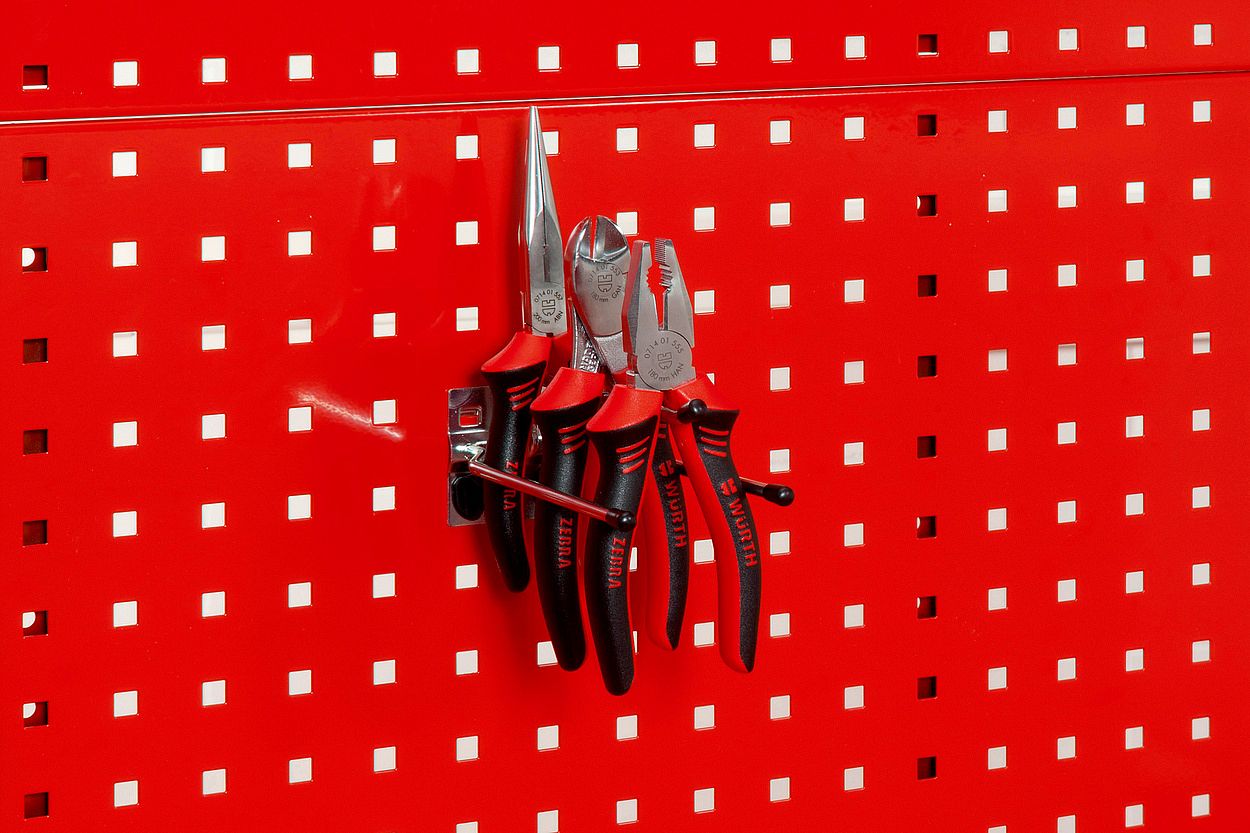 Кронштейн (держатель) шарнирно губцевого инструмента с диаметром клюка 6 мм для перфорированных панелей с квадратной перфорацией, Wurth