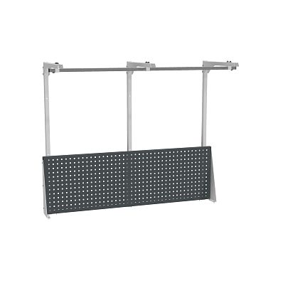В комплекте перфорированная панель, комплект упоров, 3 стойки, 3 консоли, перекладина.