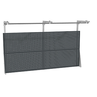 В комплекте две перфорированные панели, комплект упоров, 3 стойки, 3 консоли, перекладина.