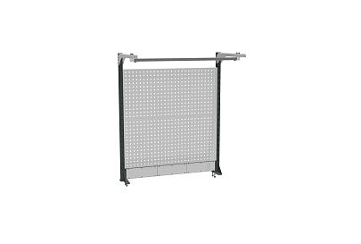 В комплекте короб для коммуникаций, 2 перфорированные панели, комплект стоек боковых, 2 консоли и перекладина.