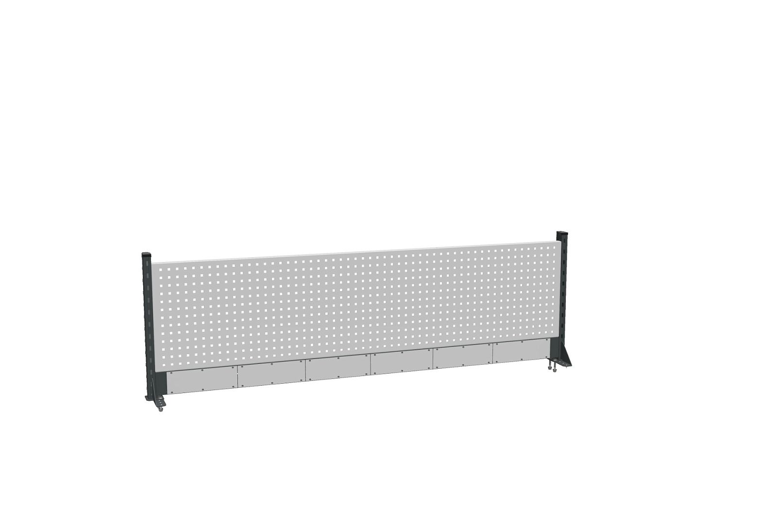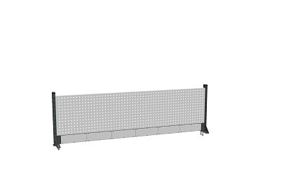 В комплекте короб для коммуникаций, одна перфорированная панель, комплект стоек боковых.