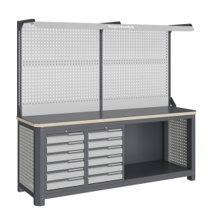 Модуль верстака выполнен сварными. Ящики в модулях устанавливаются на шариковых телескопических направляющих полного выдвижения.
