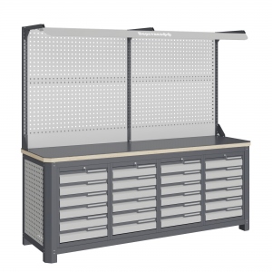 Модуль верстака выполнен сварными. Ящики в модулях устанавливаются на шариковых телескопических направляющих полного выдвижения.