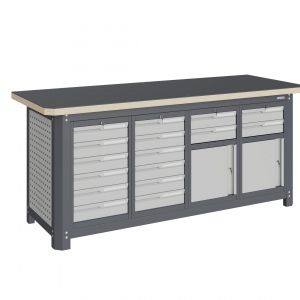 Модуль верстака выполнен сварными. Ящики в модулях устанавливаются на шариковых телескопических направляющих полного выдвижения.