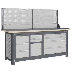 Модуль верстака выполнен сварными. Ящики в модулях устанавливаются на шариковых телескопических направляющих полного выдвижения.