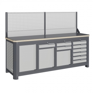 Модуль верстака выполнен сварными. Ящики в модулях устанавливаются на шариковых телескопических направляющих полного выдвижения.