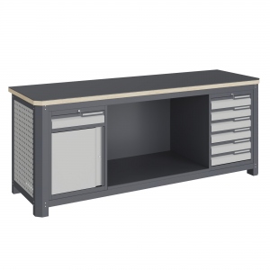 Модуль верстака выполнен сварными. Ящики в модулях устанавливаются на шариковых телескопических направляющих полного выдвижения.