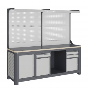 Модуль верстака выполнен сварными. Ящики в модулях устанавливаются на шариковых телескопических направляющих полного выдвижения.