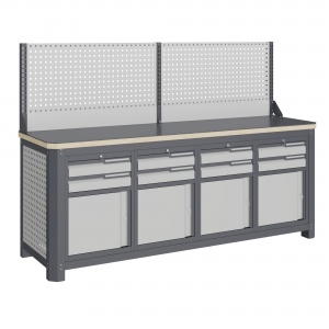 Модуль верстака выполнен сварными. Ящики в модулях устанавливаются на шариковых телескопических направляющих полного выдвижения.