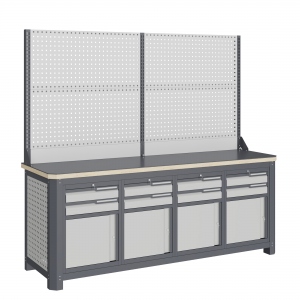 Модуль верстака выполнен сварными. Ящики в модулях устанавливаются на шариковых телескопических направляющих полного выдвижения.