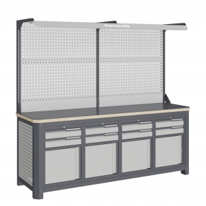 Модуль верстака выполнен сварными. Ящики в модулях устанавливаются на шариковых телескопических направляющих полного выдвижения.