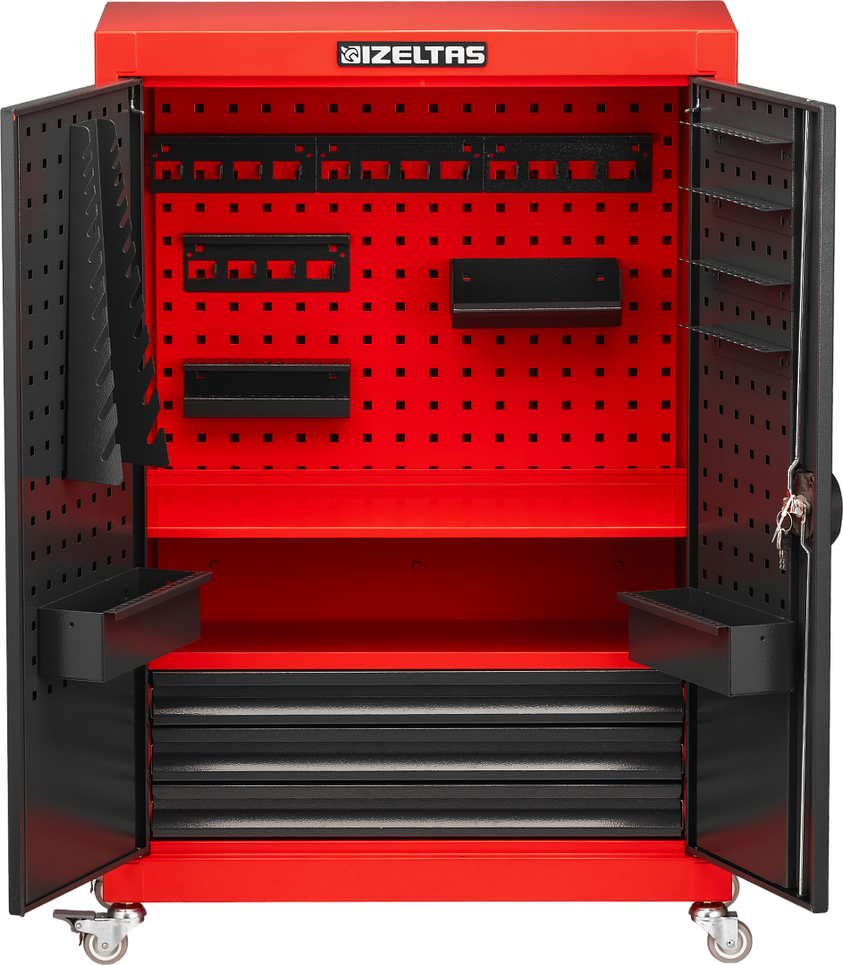 Шкаф инструментальный передвижной, 3 выдвижных ящика, 2 полки, красно-черный. IZELTAS, 8160326001, 13000002112